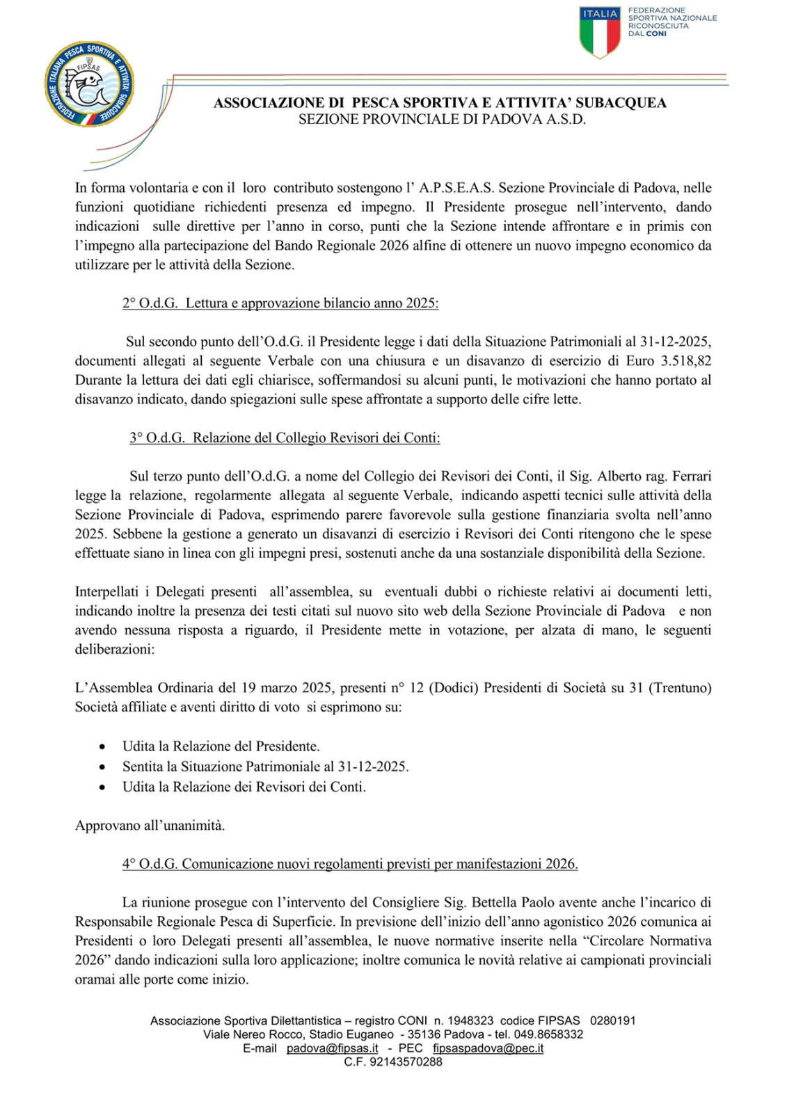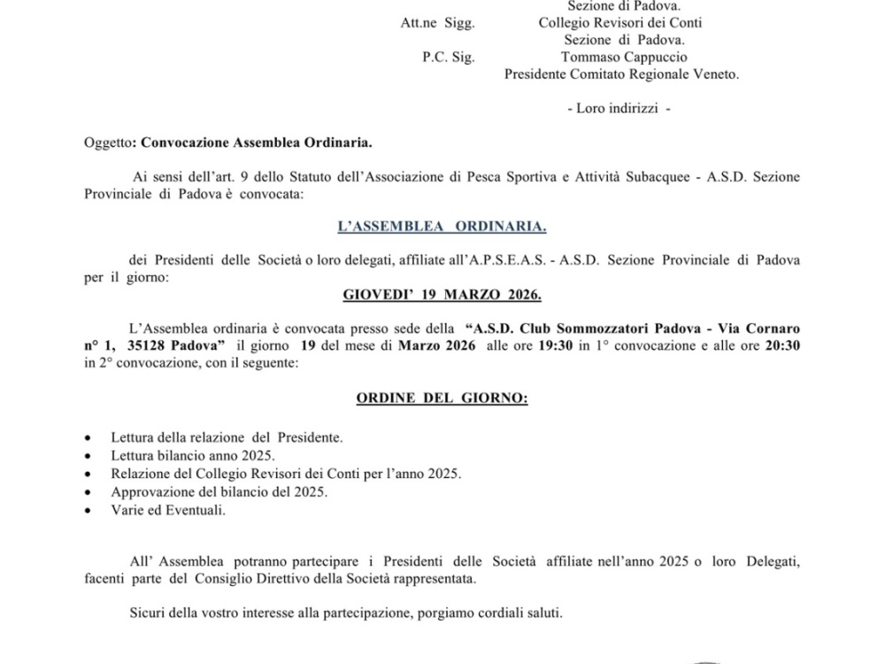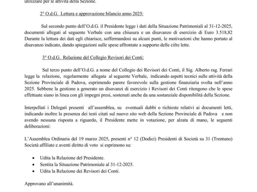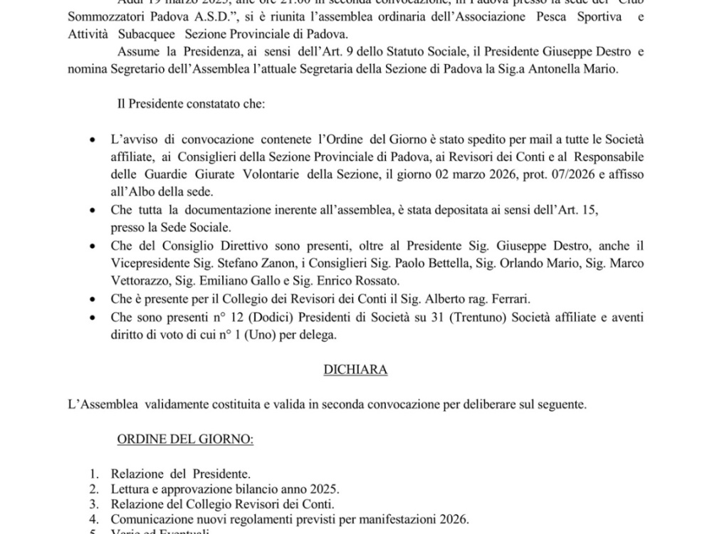 Assemblea Ordinaria per l'anno 2025
