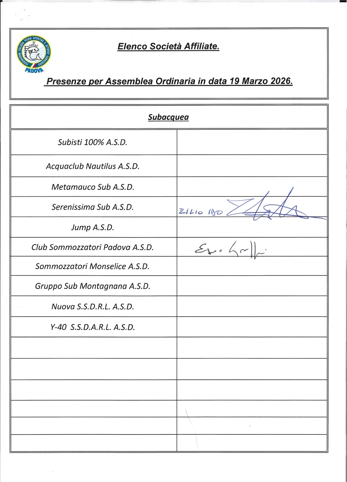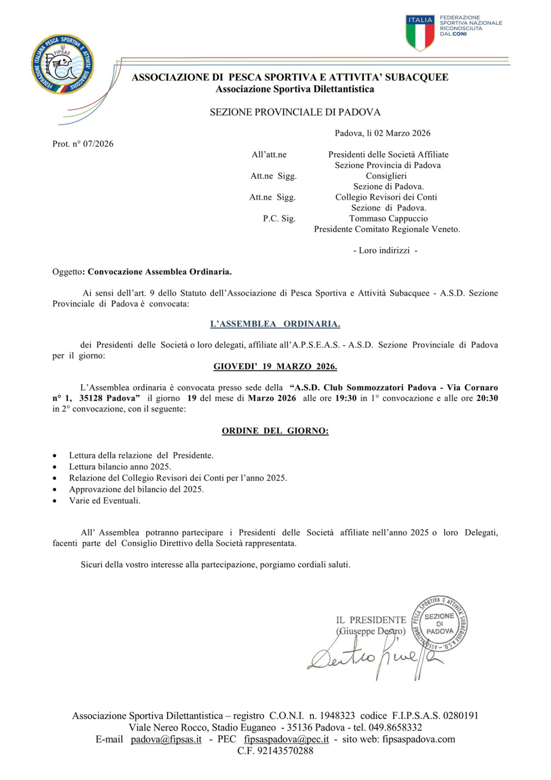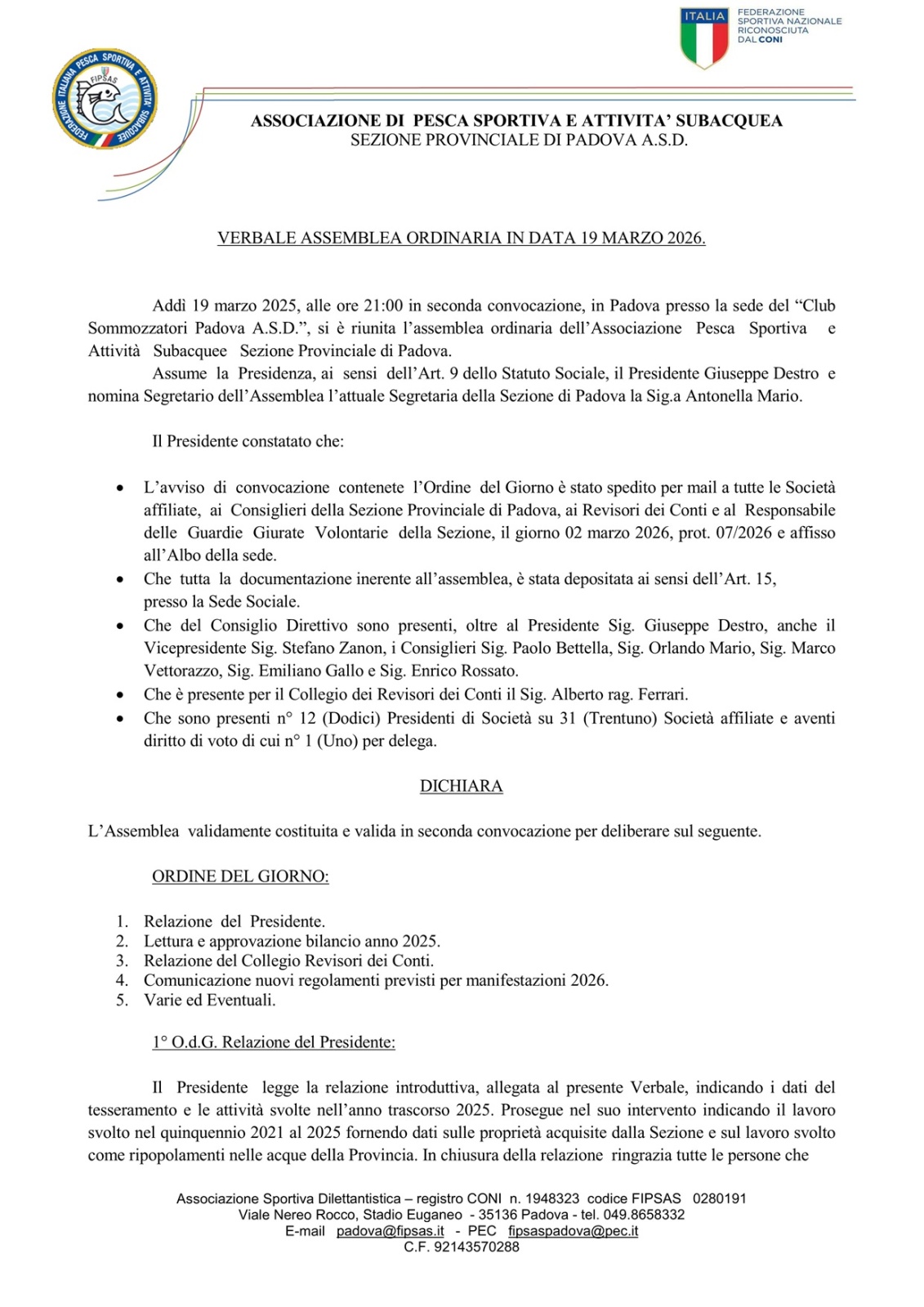 Assemblea Ordinaria per l'anno 2025