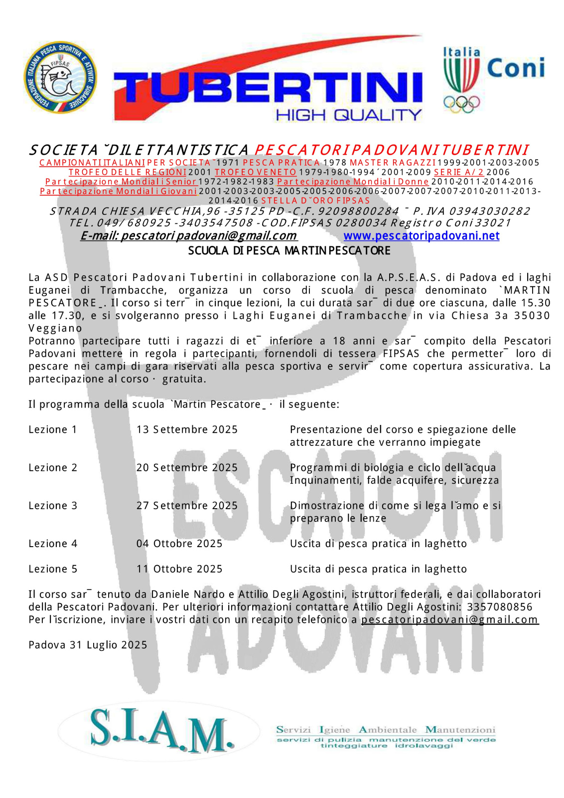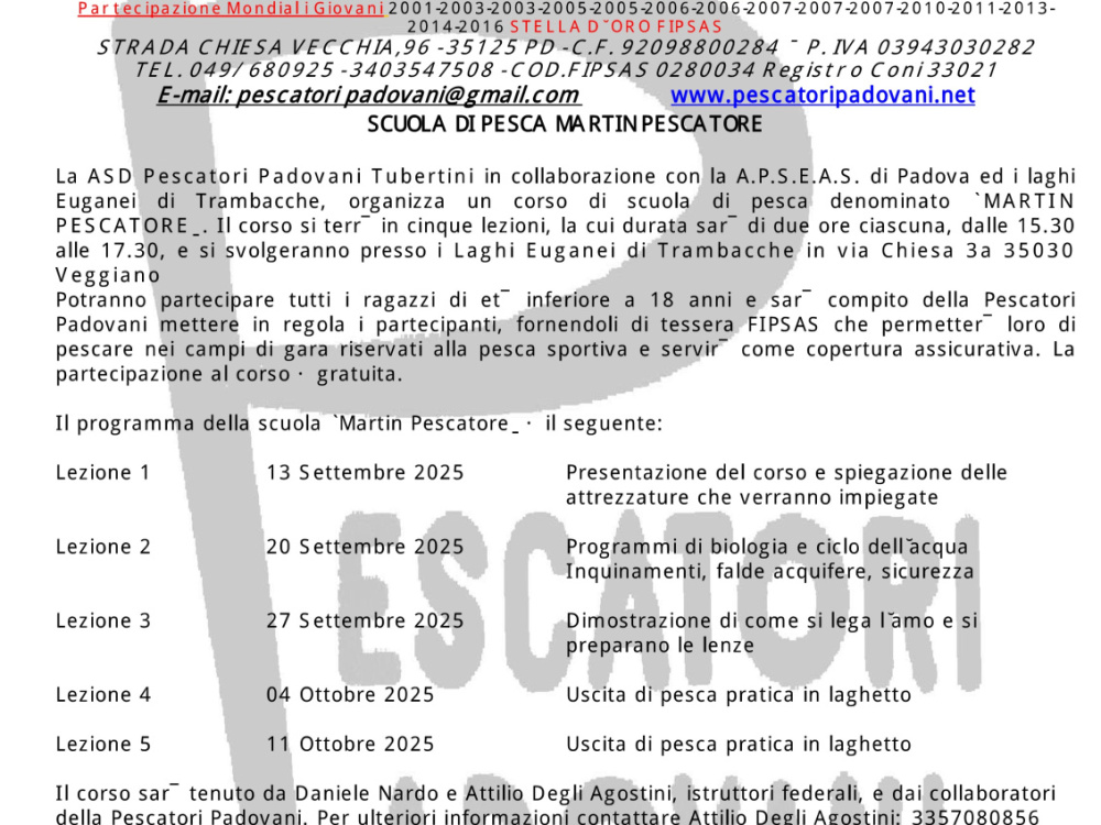 Scuola di pesca Martin Pescatore 2025.